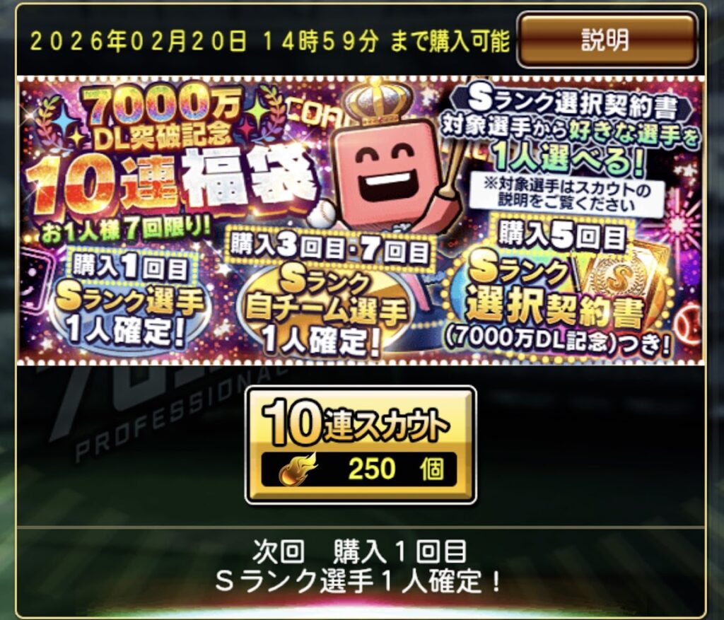 ガチャ仕様としては10連目にSランク契約書確定、30・70連目自チーム契約書確定(純正おすすめ)