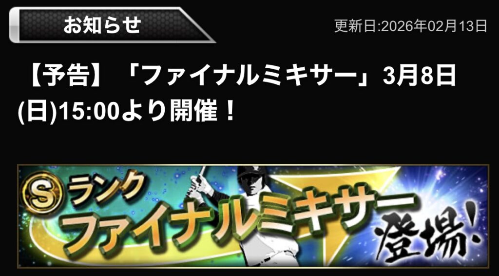 予告としてファイナルミキサーが3月8日から登場するお知らせが来ました。